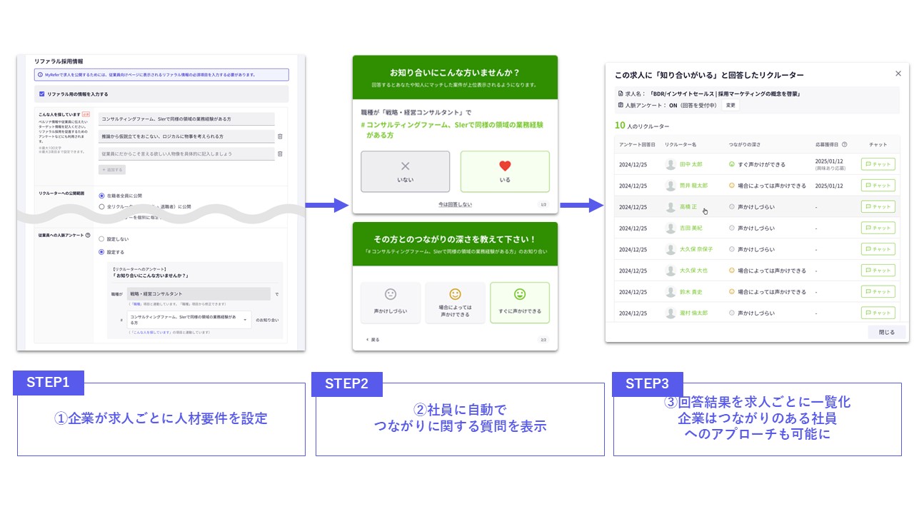 株式会社TalentX(本社:東京都新宿区、代表取締役社長 CEO:鈴木貴史、証券コード:330A、以下「当社」)は、リファラル採用サービス「MyRefer」において、2025年4月1日にリリースした、社員の記憶に眠る人脈をテクノロジーによって呼び起こす新機能「リクルーターレコメンド機能」の活用で、従来比でリファラル採用の応募率が3倍に伸長したことをお知らせします。